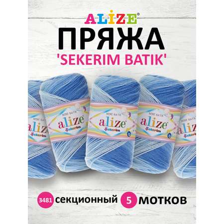Цена на Пряжа для вязания Alize sekerim batik 100 гр 320 м акрил мягкая для детской одежды 3481 секционный 5 мотков - 712 ₽.