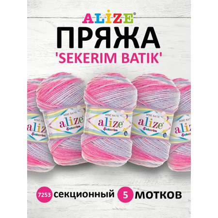 Цена на Пряжа для вязания Alize sekerim batik 100 гр 320 м акрил мягкая для детской одежды 7253 секционный 5 мотков - 712 ₽.