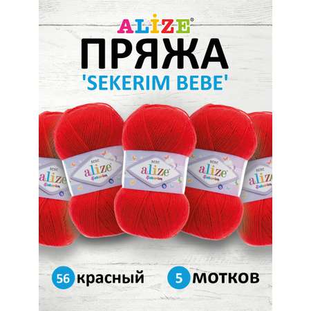 Пряжа для вязания Alize sekerim bebe 100 гр 320 м акрил для мягких игрушек 56 красный 5 мотков