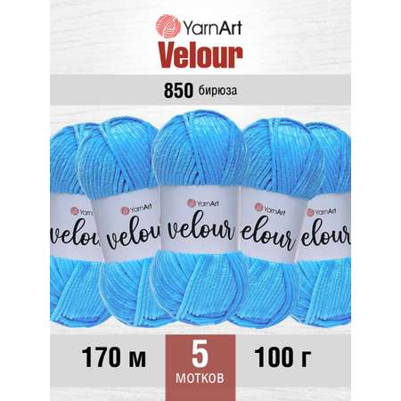 Пряжа для вязания YarnArt Velour 100 г 170 м микрополиэстер мягкая велюровая 5 мотков 850 бирюза