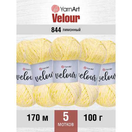 Пряжа для вязания YarnArt Velour 100 г 170 м микрополиэстер мягкая велюровая 5 мотков 844 лимонный