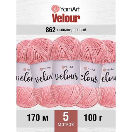 Пряжа для вязания YarnArt Velour 100 г 170 м микрополиэстер мягкая велюровая 5 мотков 862 пыльно-розовый