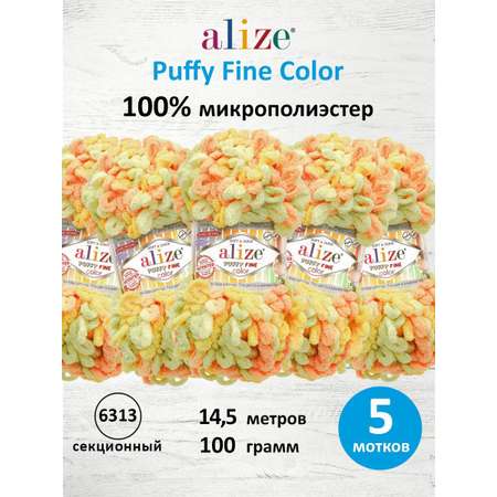 Пряжа для вязания Alize puffy fine color 100 г 14.5 м микрополиэстер плюшевая мягкая 6313 секционный 5 мотков