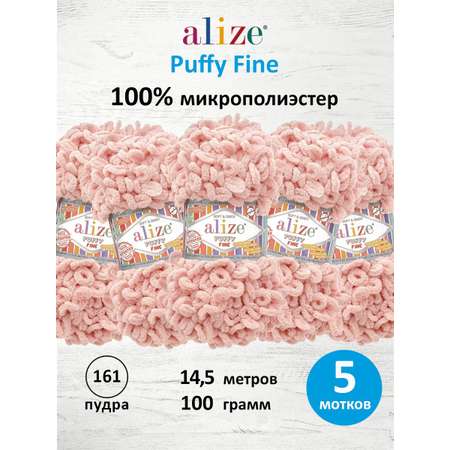 Цена на Пряжа для вязания Alize puffy fine 100 г 14.5 м микрополиэстер фантазийная мягкая 161 пудра 5 мотков - 1093 ₽.