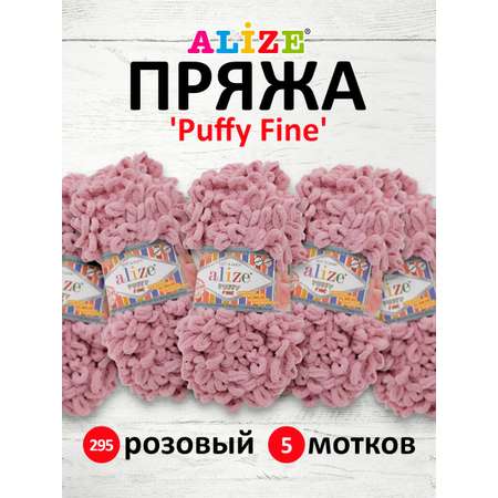 Цена на Пряжа для вязания Alize puffy fine 100 г 14.5 м микрополиэстер фантазийная мягкая 295 розовый 5 мотков - 1093 ₽.
