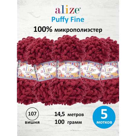 Цена на Пряжа для вязания Alize puffy fine 100 г 14.5 м микрополиэстер фантазийная мягкая 107 вишня 5 мотков - 1093 ₽.