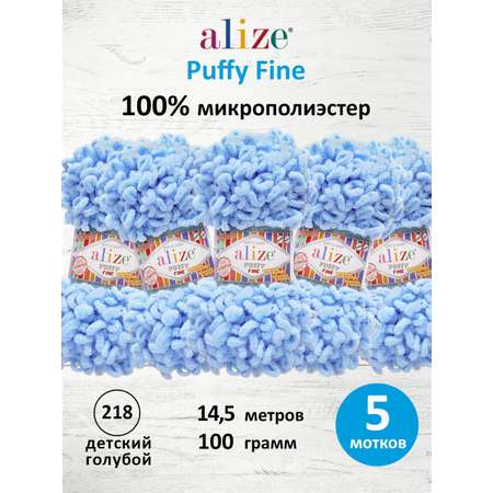 Пряжа для вязания Alize puffy fine 100 г 14.5 м микрополиэстер фантазийная мягкая 218 детский голубой 5 мотков