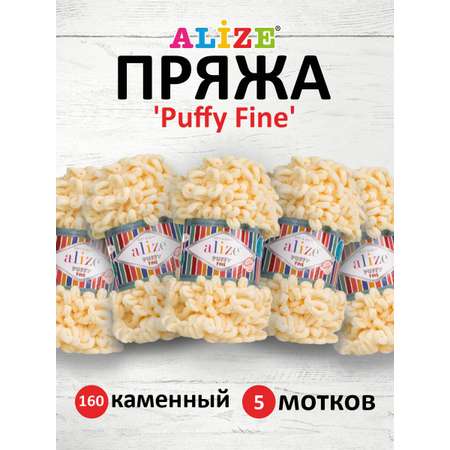 Цена на Пряжа для вязания Alize puffy fine 100 г 14.5 м микрополиэстер фантазийная мягкая 160 каменный 5 мотков - 1090 ₽.