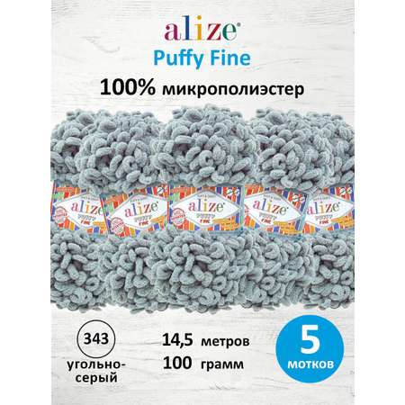 Цена на Пряжа для вязания Alize puffy fine 100 г 14.5 м микрополиэстер фантазийная мягкая 343 угольно-серый 5 мотков - 1093 ₽.