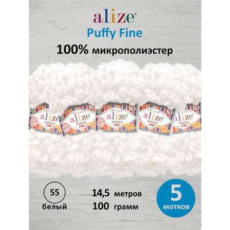 Цена на Пряжа для вязания Alize puffy fine 100 г 14.5 м микрополиэстер фантазийная мягкая 55 белый 5 мотков - 1093 ₽.