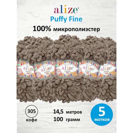Пряжа для вязания Alize puffy fine 100 г 14.5 м микрополиэстер фантазийная мягкая 305 Кофе 5 мотков