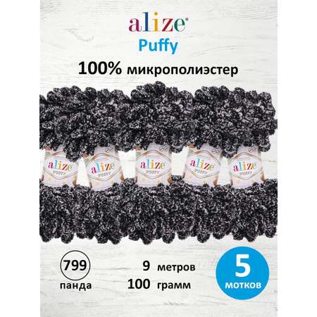 Цена на Пряжа для вязания Alize puffy 100 г 9 м микрополиэстер фантазийная плюшевая 799 панда 5 мотков - 742 ₽.
