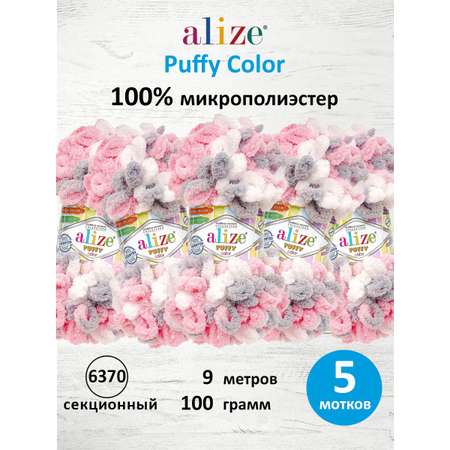 Пряжа для вязания Alize puffy color 100 г 9 м микрополиэстер плюшевая мягкая 6370 секционный 5 мотков