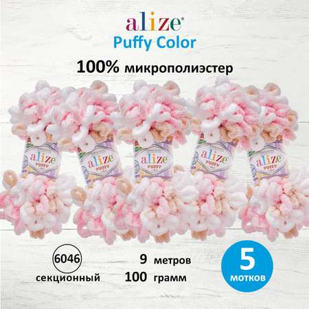 Пряжа для вязания Alize puffy color 100 г 9 м микрополиэстер плюшевая мягкая 6046 секционный 5 мотков