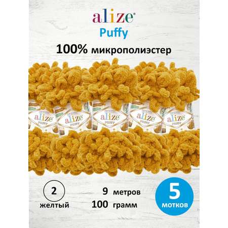 Цена на Пряжа для вязания Alize puffy 100 г 9 м микрополиэстер фантазийная плюшевая 2 желтый 5 мотков - 742 ₽.