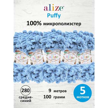 Цена на Пряжа для вязания Alize puffy 100 г 9 м микрополиэстер фантазийная плюшевая 280 средне-синий 5 мотков - 742 ₽.