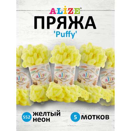 Цена на Пряжа для вязания Alize puffy 100 г 9 м микрополиэстер фантазийная плюшевая 552 желтый неон 5 мотков - 742 ₽.