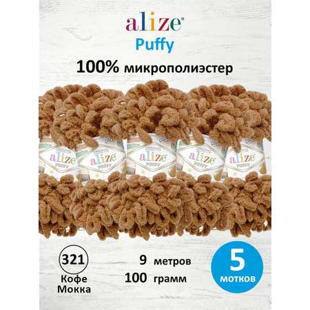 Цена на Пряжа для вязания Alize puffy 100 г 9 м микрополиэстер фантазийная плюшевая 321 Кофе Мокка 5 мотков - 742 ₽.