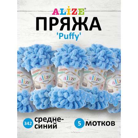 Цена на Пряжа для вязания Alize puffy 100 г 9 м микрополиэстер фантазийная плюшевая 342 средне-синий 5 мотков - 742 ₽.