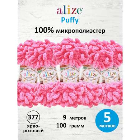Пряжа для вязания Alize puffy 100 г 9 м микрополиэстер фантазийная плюшевая 377 ярко-розовый 5 мотков