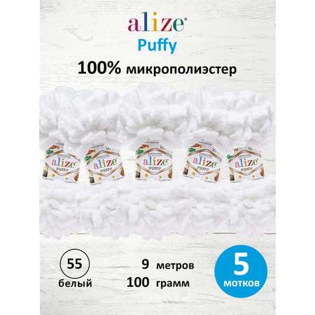 Цена на Пряжа для вязания Alize puffy 100 г 9 м микрополиэстер фантазийная плюшевая 55 белый 5 мотков - 1103 ₽.