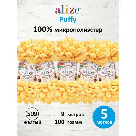 Цена на Пряжа для вязания Alize puffy 100 г 9 м микрополиэстер фантазийная плюшевая 509 желтый 5 мотков - 742 ₽.