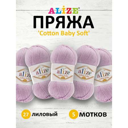 Пряжа для вязания Alize cotton baby soft 100 гр 270 м мягкая плюшевая xлопок aкрил 27 лиловый 5 мотков