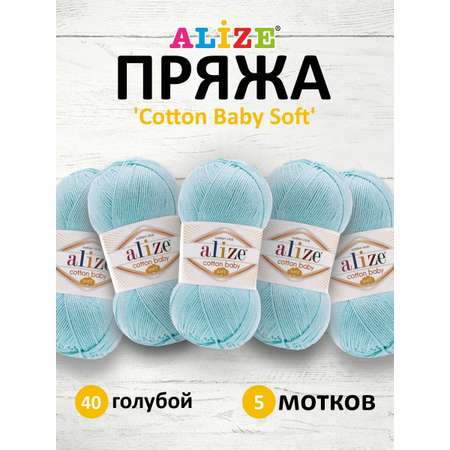 Пряжа для вязания Alize cotton baby soft 100 гр 270 м мягкая плюшевая xлопок aкрил 40 голубой 5 мотков