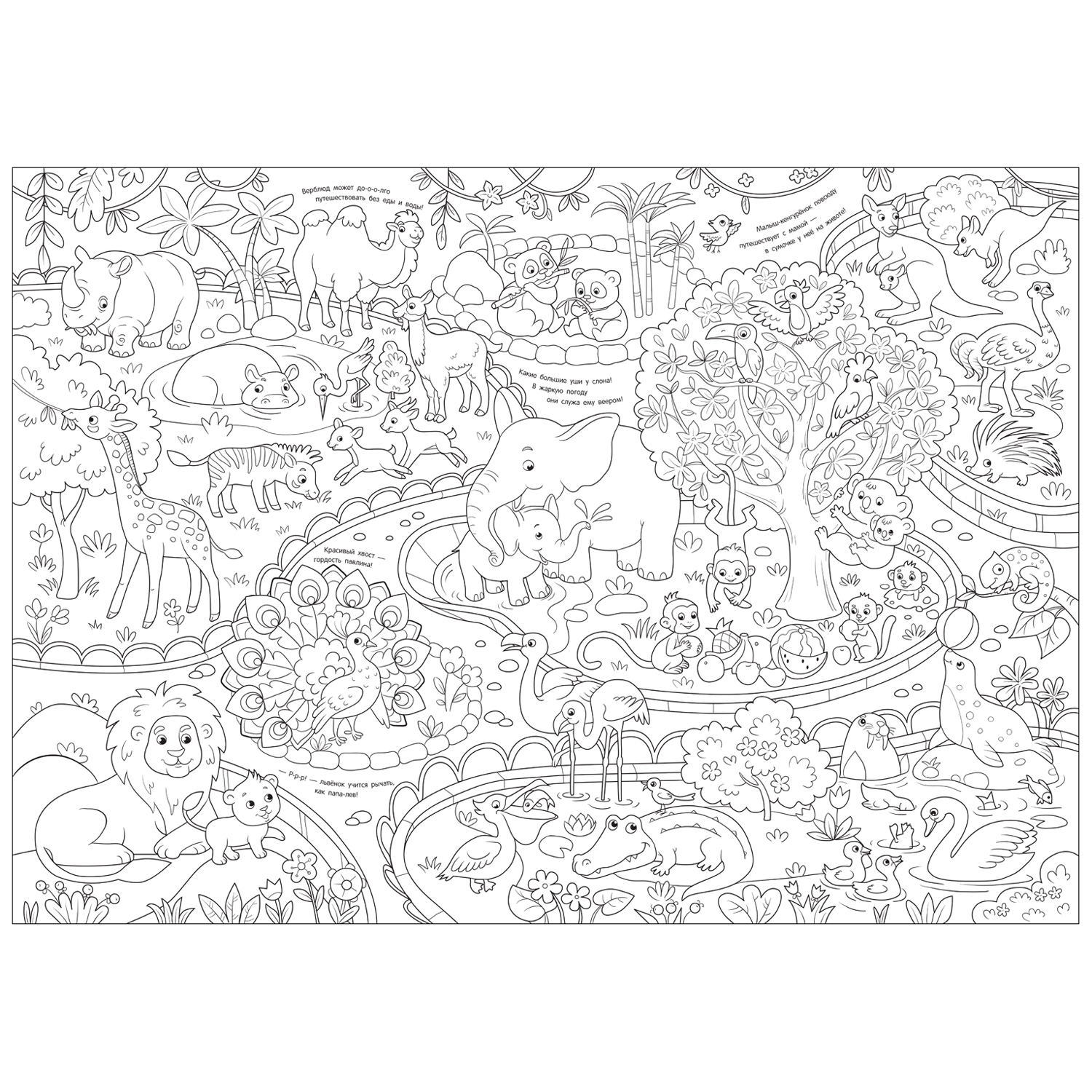 Огромный простор для творчества — 85 х 60 см, а иллюстрации С ДВУХ СТОРОН. Крупные элементы и толстый контур — удобно раскрашивать даже самым маленьким!