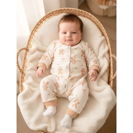 - Кнопочная застежка: Аккуратные кнопки спереди делают переодевание мгновенным, не беспокоя ребенка. Легкий доступ к смене подгузника и пеленанию без лишних хлопот.