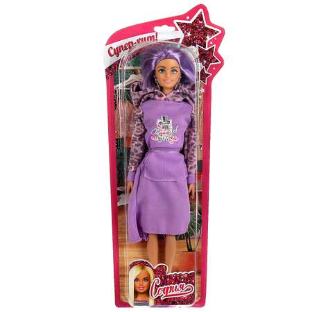 Модница-София одета в яркое фиолетовое платье с интересным принтом. Образ дополняют крупные серебристые серьги. Одежду и аксессуары легко снять и надеть. С такой модной куклой девочке будет интересно и весело играть: благодаря тому, что руки и ноги куклы подвижны, им можно придать любое положение. У Софии длинные красивые волосы, которые хозяйка куклы сможет заплетать в разные причёски. Детально проработанный дизайн игрушки вдохновит девочку на новые игровые сюжеты.