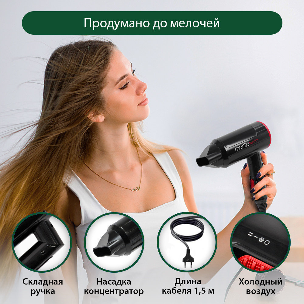 Цена на Фен MARTA MT-1265 черный чароит - 1098 ₽.