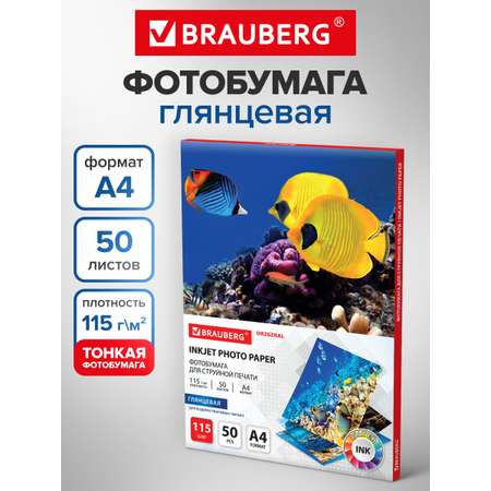 "Фотобумага глянцевая BRAUBERG ORIGINAL формата А4 — это идеальный выбор для создания впечатляющих фотопечатей. С плотностью 115 г/м2 она гарантирует отсутствие просвечивания и превосходное качество изображений. Эта фотобумага для принтера совместима со всеми типами струйных устройств, что делает её универсальным инструментом для домашнего и профессионального использования.