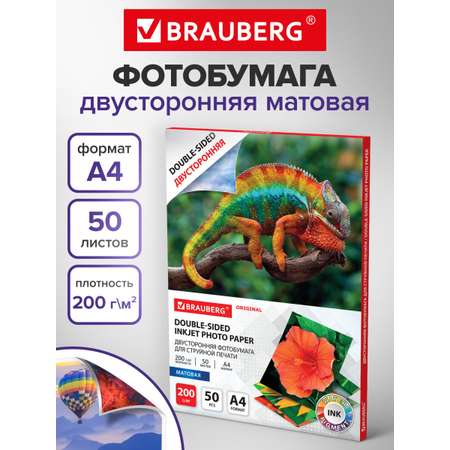 "Создайте шедевры с матовой фотобумагой BRAUBERG ORIGINAL! Эта двусторонняя фотобумага формата А4, плотностью 200 г/м2, идеально подходит для печати рекламных материалов, портфолио и фотопортретов. Благодаря гладкой поверхности, напечатанные изображения не бликуют, а цвета получают бархатистую глубину. Это отличная фото бумага для струйной печати, обеспечивающая превосходное качество и идеальную цветопередачу при использовании водорастворимых и пигментных чернил. Каждый комплект содержит 50 листов А4, что делает ее экономичным выбором для творческих проектов. Заработайте восхищение друзей и коллег, распечатав черно-белые и цветные работы на этой качественной бумаге. Освободите свою креативность и наслаждайтесь результатом с фотобумагой BRAUBERG!