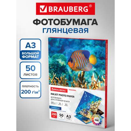Фотобумага Brauberg глянцевая для печати фото большого формата 50 листов А3
