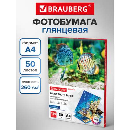 Цена на Фотобумага Brauberg глянцевая для печати фото 50 листов А4 - 600 ₽.