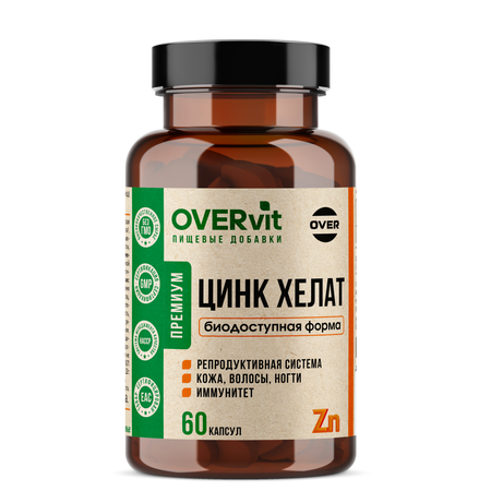 Для полноценного функционирования организма необходимо поступление важных витаминов и минералов. Цинк – один из таких веществ. Дефицит цинка может проявляться в снижении иммунитета, выпадение волос, нарушение функционирования нервной, зрительной и репродуктивной систем. Для восполнения дефицита цинка важно принимать витаминно-минеральный комплекс или необходимые витаминв или минералы отдельно. Хелат цинка от OVERvit прекрасно справляется с этой задачей благодаря хелатной форме цинка. Хелатная форма легко усваивается организмом без побочных эффектов со стороны ЖКТ.
