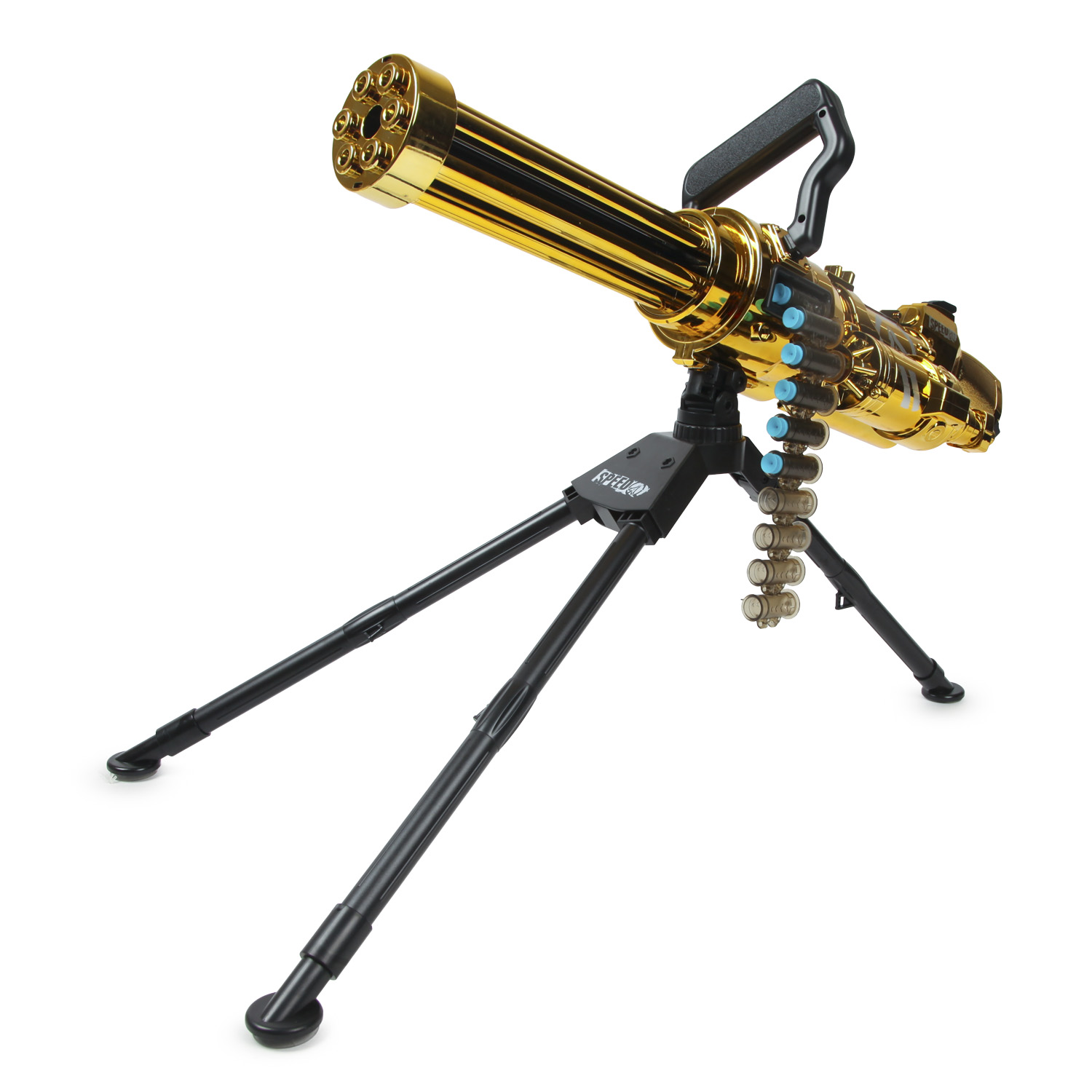 Оружие имеет световой прицел. У бластера 2 режима стрельбы, при которых ствол вращается. Орудие устанавливается на треноге и имеет возможность крутиться на 360 градусов вокруг своей оси. Пулемет стреляет мягкими патронами с пластиковым наконечником. Работает от аккумулятора. Дальность стрельбы - до 25 метров.