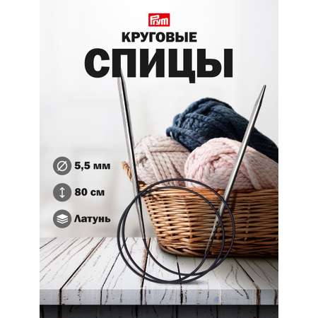 Цена на Спицы круговые Prym Гладкие из латуни с гибким пластиковым тросиком 80 см 5.5 мм 212174 - 550 ₽.
