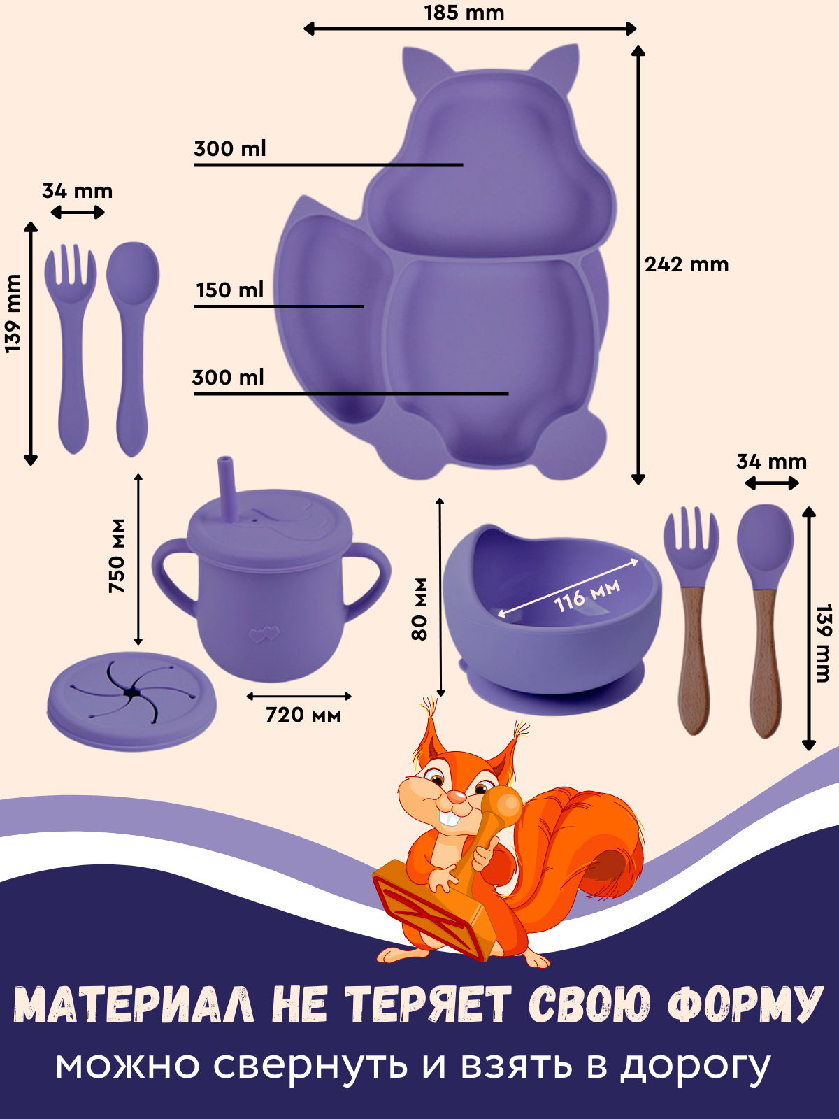 - Набор качественный и удобный, глубокая тарелочка на присоске, присоска держет отлично, ребенок как не пытался, не смог ее скинуть со стола
