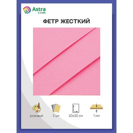 Фетр Astra and Craft жесткий листовой 1 мм 20 х 30 см 3 шт розовый