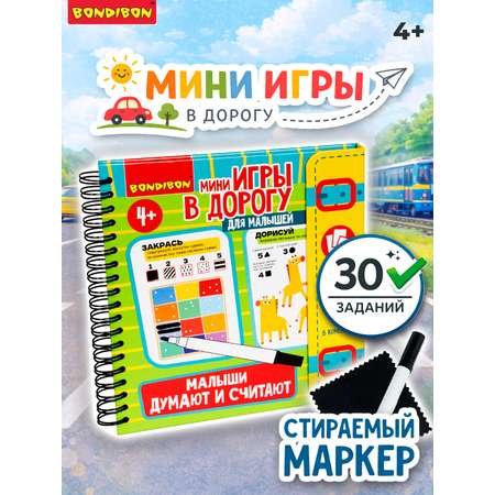с картинками, от которых просто невозможно оторваться. В комплект входят: книга, 30 карточек с разными интересными заданиями, маркер, салфетка. Предназначен детям от 4 лет. Компактный формат, позволяет брать дорожную игру в поездки, что делает ее удобным спутником в машине, самолете или поезде. Игровой набор подходит ученикам начальной школы, дошкольникам для занятий дома на каникулах или будущему первокласснику на выпускной в детском садике. Логические настольные игры такого типа пользуются популярностью за счет их пользы и увлеченности. В коллекции товаров от Бондибон представлены детские обучающие и логические игрушки для девочек и мальчиков, крутые необычные развивашки для подростков, популярные настолки для всей семьи!