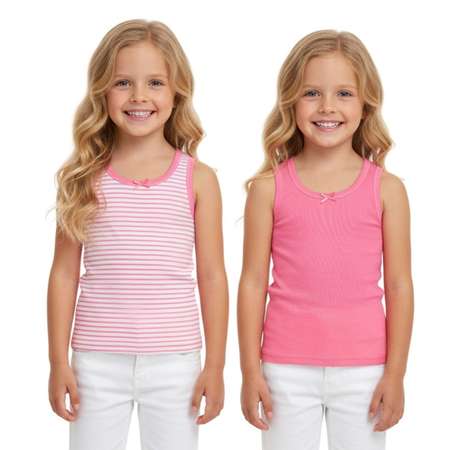 ЦВЕТ ФУКСИЯ, ПОЛОСКА (БЕЛЫЙ,ФУКСИЯ) Хлопковая майка для девочек - 2штуки Набор маек для девочки на широких лямках брительках , набор от 3 до 12 лет , это идеальное решение для комфортного повседневного использования. Представляем разнообразные , БЕСШОВНЫЕ майки для девочек . Мы заботимся о качестве и комфорте детей, поэтому все наша майка для девочки изготовлена из мягкого и дышащего хлопкового материала РИБАНА. Майки на девочку представлены в различных дизайнах и цветах. Наша майка для девочек нательная , изготовлена из качественных материалов, при соблюдении режима стирки, обеспечит нежность и мягкость на коже вашего малыша. Нательные майки для девочки повседневные , представлены в различных размерах . Не упустите шанс приобрести набор маек для девочек со скидкой. Комплект маек для девочки обеспечит её стильными и современными моделями. Нижнее бельё - отличный подарок для девочки !