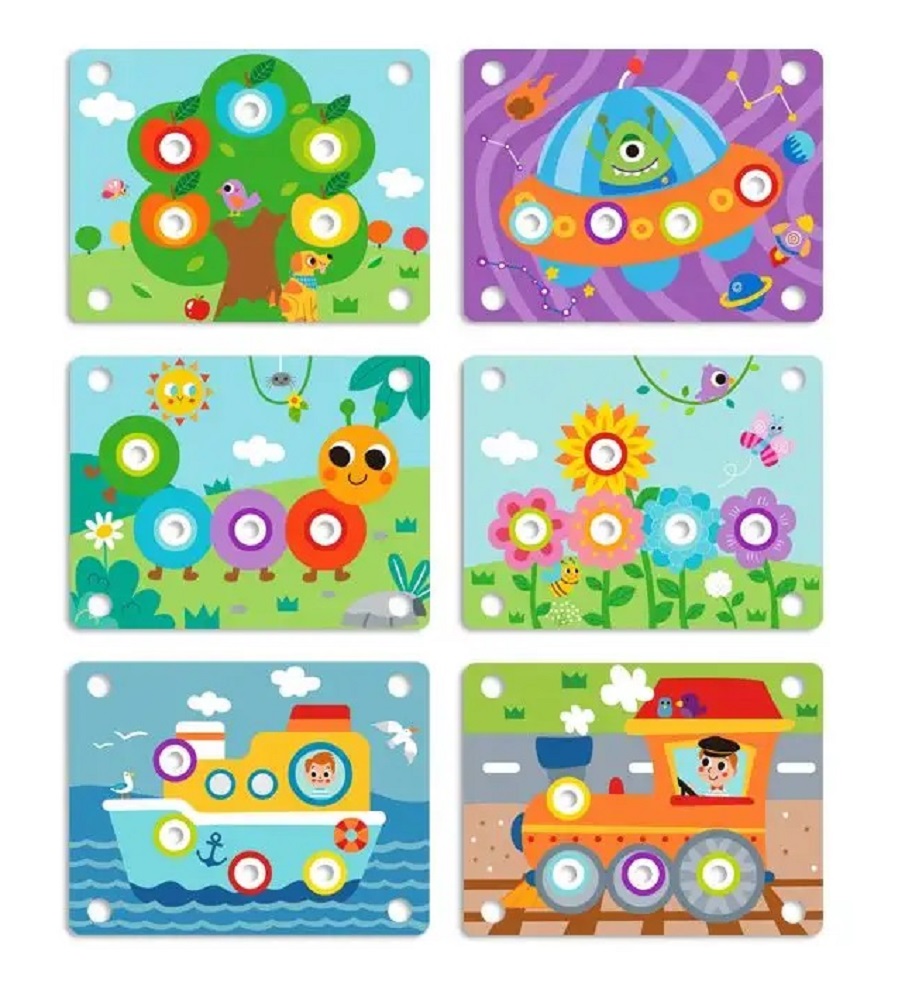 Новинка от Tooky Toy со сложной концепцией, но простым дизайном, поможет Вашим детям развить инженерные навыки. Положите одну из шести двухсторонних карточек на деревянную игровую основу, поместите шестерни в отверстия, соотнося цвета, а теперь попробуйте их покрутить. Этот набор развивает воображение и дает возможность экспериментировать с простой механикой и наукой. Игра улучшает мелкую моторику, способствуя рассуждениям и решению проблем, дети создают движущиеся эксперименты с вращающимися красочными деталями. Набор основан на учебной программе STEM (наука, технология, инженерия и математика).