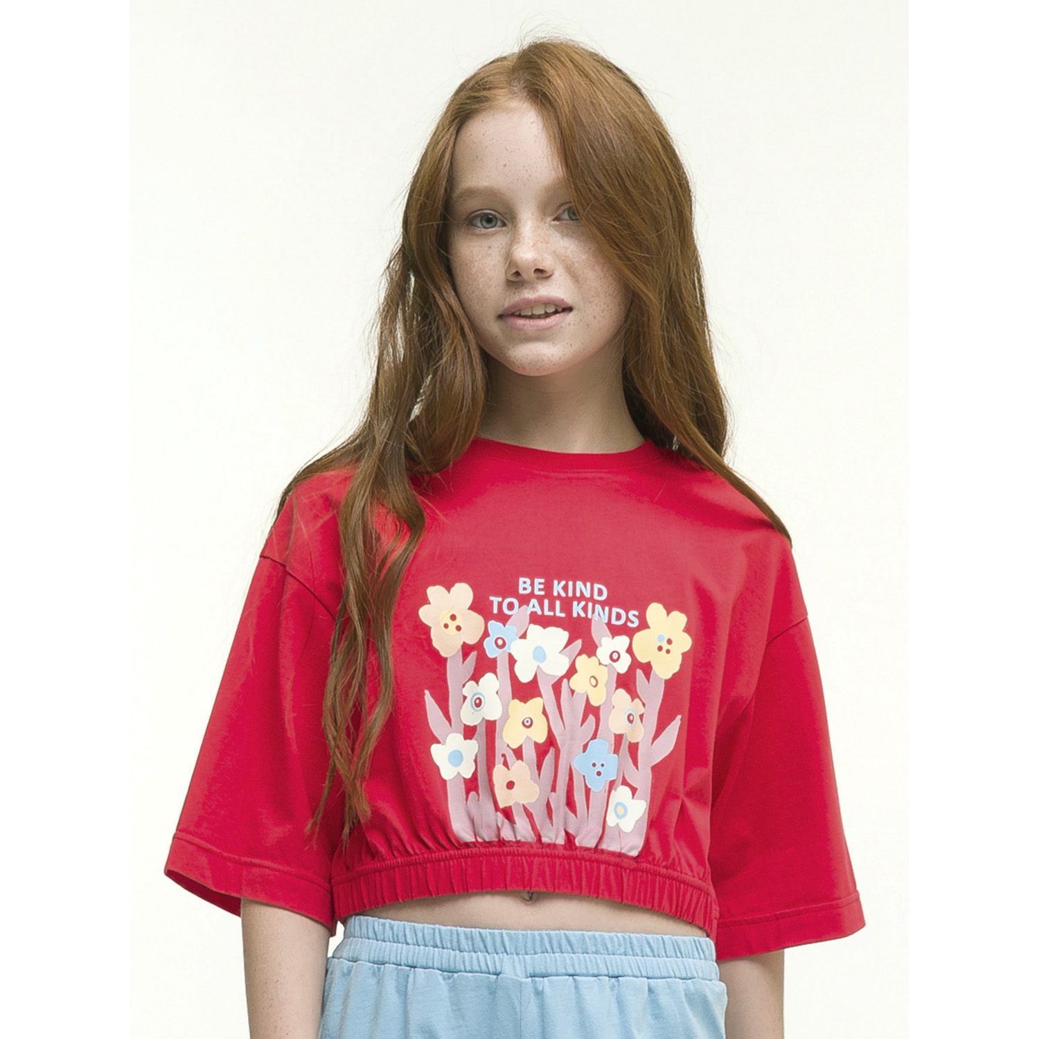 Кроп-топ для девочки - актуальный тренд этого лета. Выполнена из 100% хлопка, материал не вызывает аллергии, тело ребенка всегда дышит, идеально подходит для лета. Кроп футболка расслабленного силуэта с сильно спущенным плечом, длиной до талии, по низу собрана на резинку, создавая легкий объем, обеспечивая комфорт и свободу движений. Изделие декорировано нежным принтом и надписью «растем каждый день» для прерасного настроения. Футболку можно легко сочетать с любым низом: шортами, велосипедами, юбками, джинсами и брюками. Отлично подойдет для прогулок, детского сада, школы и путешествий.