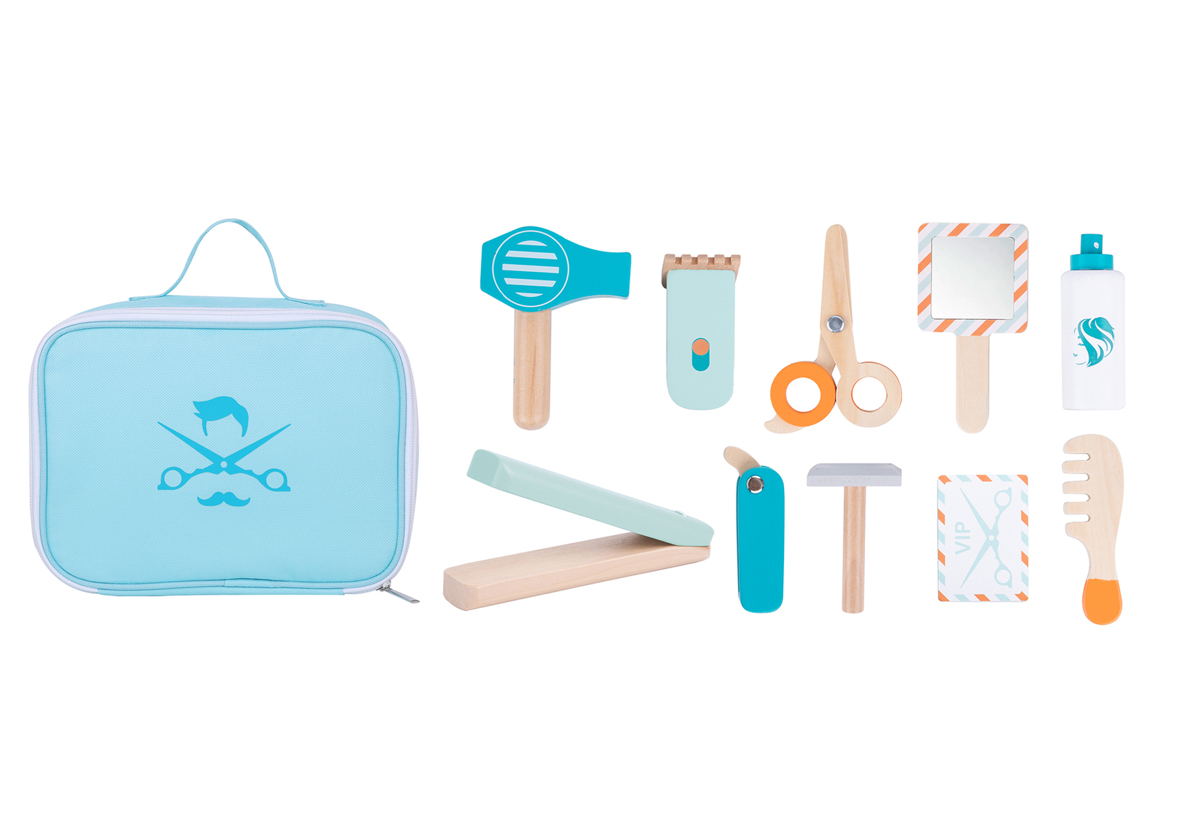 Вашему ребенку понравится притворяться, что он стрижет, укладывает волосы и прихорашивается с этим милым деревянным набором для парикмахерских от Tooky Toy.