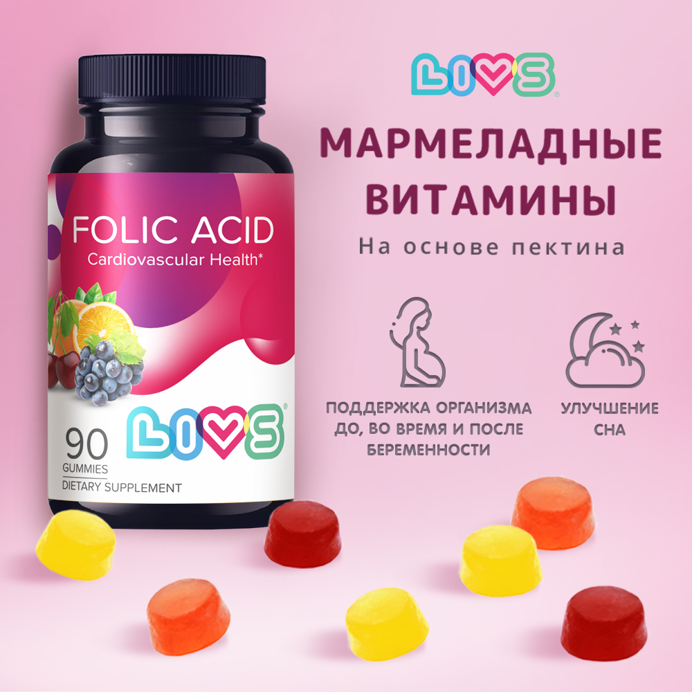 LIVS Folic Acid – витамины премиального качества для поддержания успешной беременности и нормального кроветворения. Фолиевая кислота особенно необходима женщинам, находящимся в репродуктивном возрасте, готовящимся к материнству, и беременным. Жевательные пастилки со вкусом винограда, вишни и апельсина превращают прием витаминов в удовольствие.