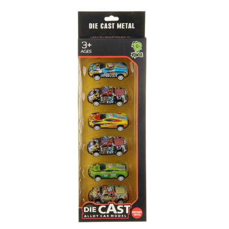 В комплекте 6 машинок. Машинки катаются вперед и назад, оснащены инерционным механизмом, металлические корпуса.