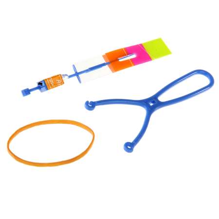- на снаряде есть крючок. Натяните резинку на рогатке, зацепив за нее крючок снаряда. Снаряд держите за цветные крылышки-листочки;