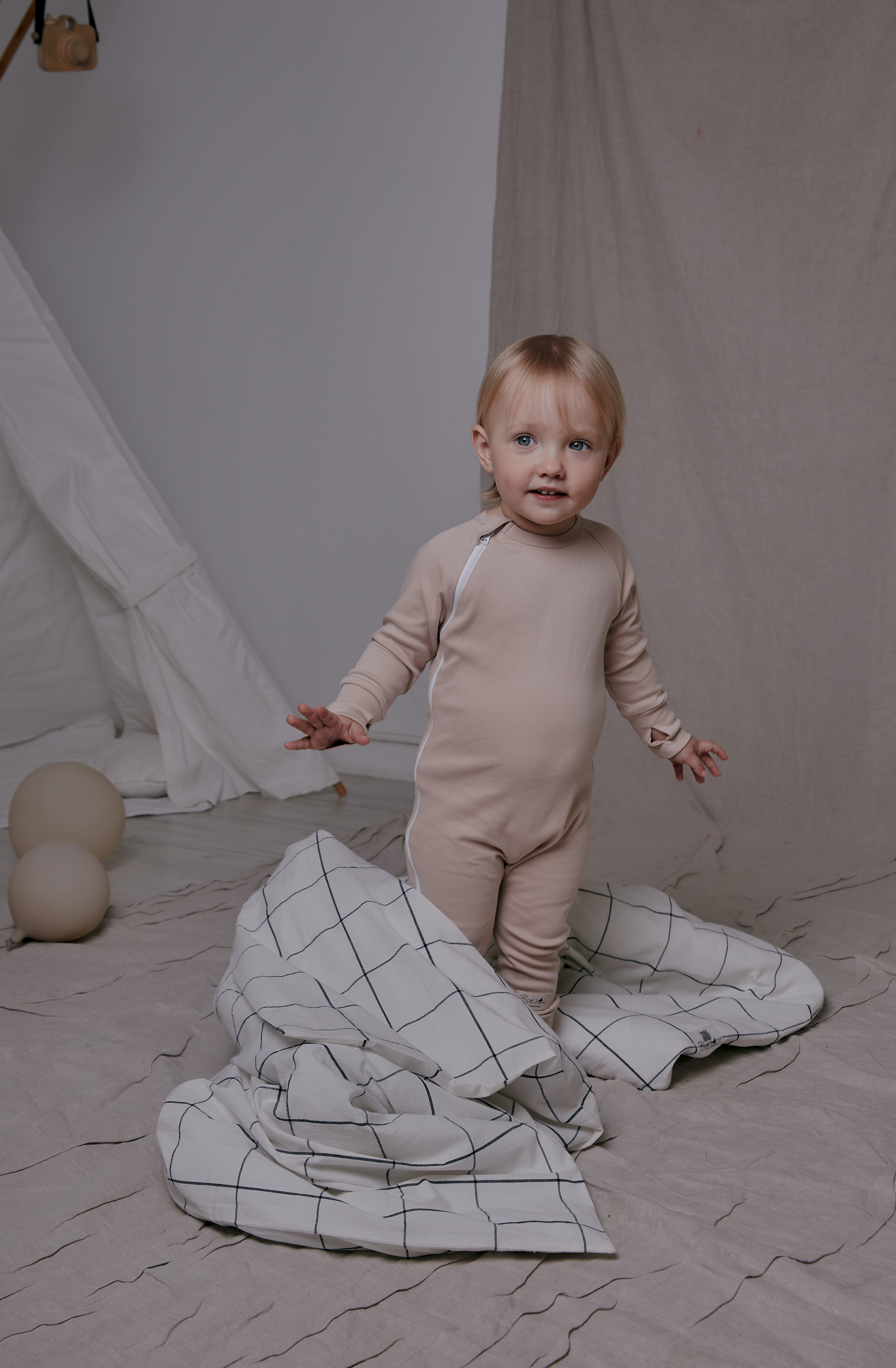 Наличие молнии позволяет быстро и легко переодеть малыша, поменять подгузник. Молния изнутри закрыта тканевой планкой, которая защищает соприкосновение с телом грудничка. На вороте у шеи дополнительно нашит трикотажный язычок, закрывающий бегунок и не дающий застёжке раскрыться.
